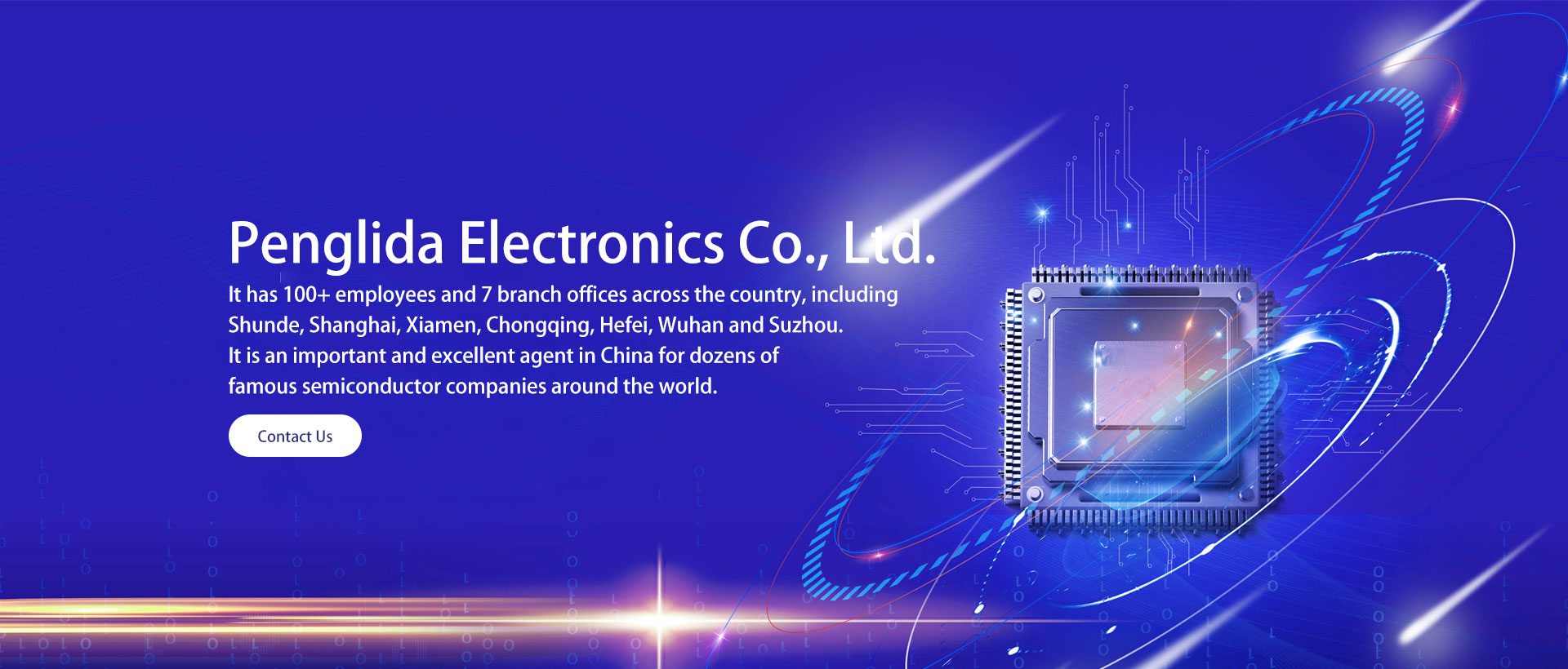 Shenzhen Penglida Electronics Co., Ltd. was established in 2002 and is headquartered in Shenzhen. It has more than 100 employees and 7 branch offices across the country, including Shunde, Shanghai, Xiamen, Chongqing, Hefei, Wuhan and Suzhou. It is an important and excellent agent in China for dozens of well-known semiconductor companies in the world. It has warehouses and delivery services in Hong Kong and Shenzhen to provide customers with more convenient procurement services.